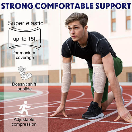 1 roll measureing 4 wide by 5 yards long * Elastic Compression Bandage Wrap * Soft and Breathable * Lightweight and breathable * Convenient Self Closure Design - no pins or tape * Hook and loop closure at both ends to allow quick wrapping * Elastic bandages with self closure measure approx. 5.5 feet long when not in use and can extend up to 15 feet * Washable and Reusable:* Perfect for different types of swelling sprains or soreness *