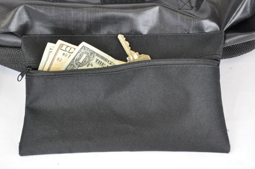 Universally sized to fit most manufacturers knee scooters * Effective practical and convenient * An amazing mobility solution that allows the knee scooter user to conveniently and comfortably take their belongings with them and access them easily * Two large pockets with hook and loop closures hold all your belongings including larger items such as laptops purses books etc. unlike a traditional basket * Tested to hold up to 25 lbs of personal items * Simple to attach with quick-click buckles and adjustment straps - no tools required * Included shoulder strap makes this bag easy to carry when removed from the knee scooter * Internally hidden zippered 7 L x 9 W security pocket securely holds important items such as keys wallets or money * Large main pocket dimensions: 16.5 L x 16 W * Mesh exterior pocket dimensions: 14 L x 16 W * Overall bag dimensions: 18 L x 16.5 W